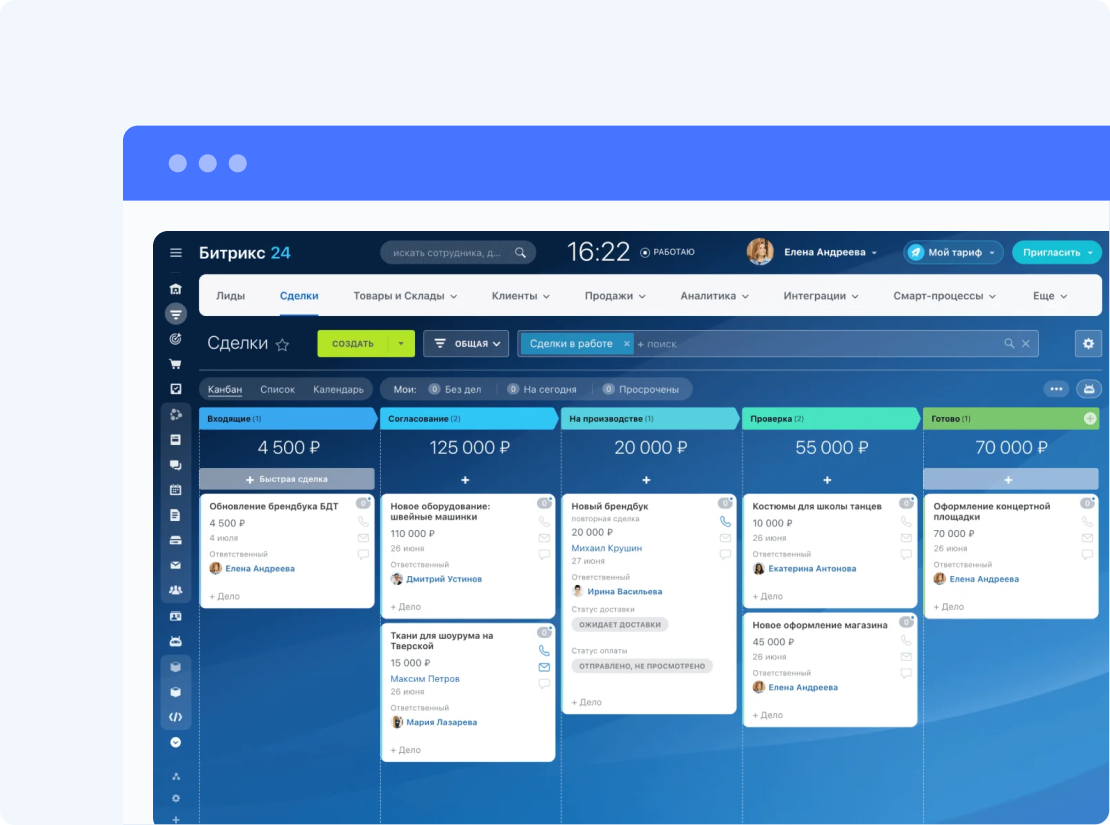 — корректность движения сделки по этапам